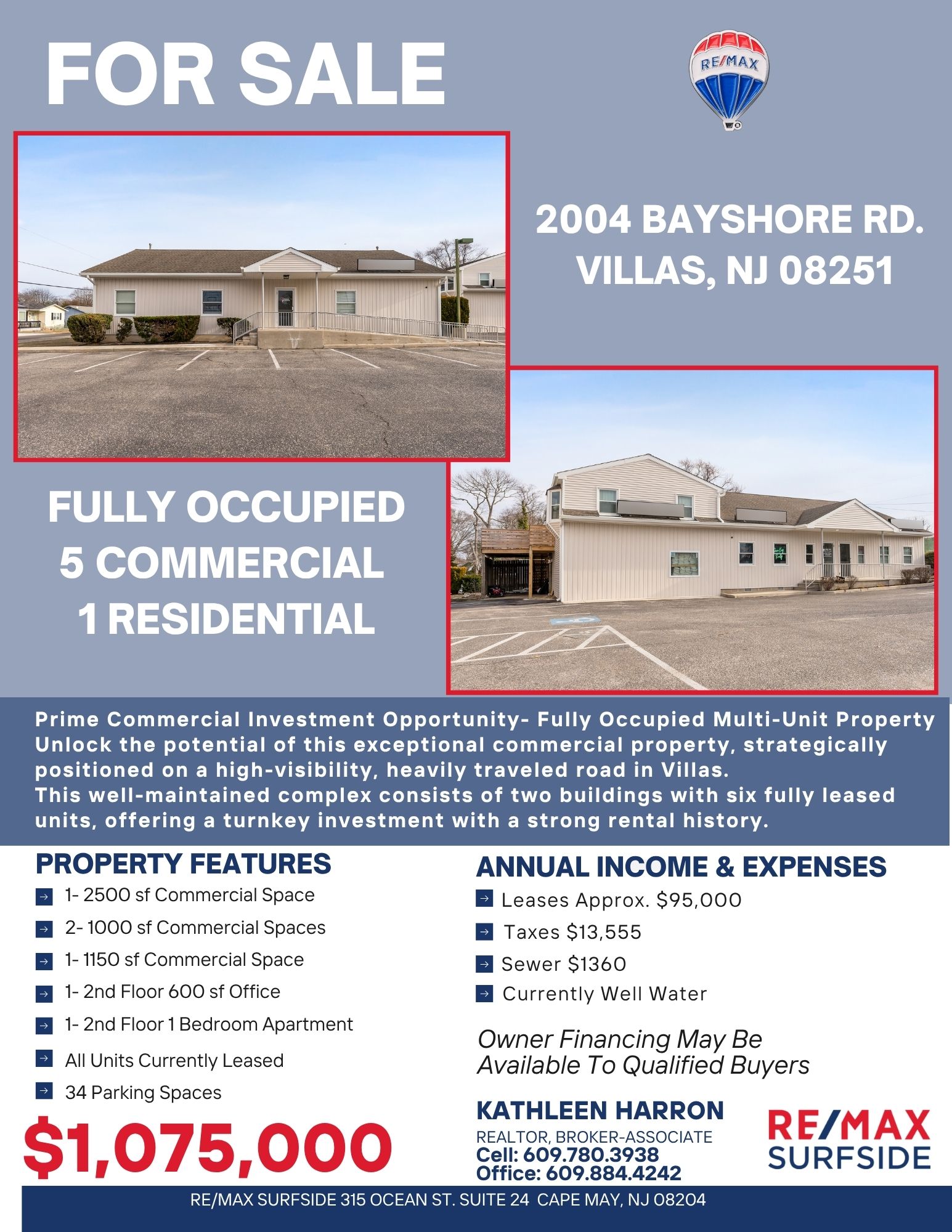 Mixed-Use Commercial Complex on the Mainland not far from Cape May & the Wildwoods. Situated on just under 1 acre, this is a Fully Leased -