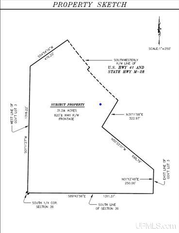 Over 30 acres with Lake Superior views in the city of Marquette. Imagine what can be developed with a combination like that! This parcel with over two football fields of frontage along one of the Upper Peninsula's busiest highways, US 41, is ripe for your next project. The custom home with curved walls, vaulted ceilings, and wide-angel views of Lake Superior features an open floor plan with kitchen, living and dining areas prime for entertaining. Full baths are on both main and upper levels. The spiral staircase leads to a luxurious suite with a sitting area as well as spacious closets. All tucked privately back in the rolling hillsides filled with tall birches, maples and century-old hemlocks. It's no wonder this home and the grounds have served as a wedding venue. Come take a tour. Zoned Mixed Use. The possibilities are once-in-a-lifetime.