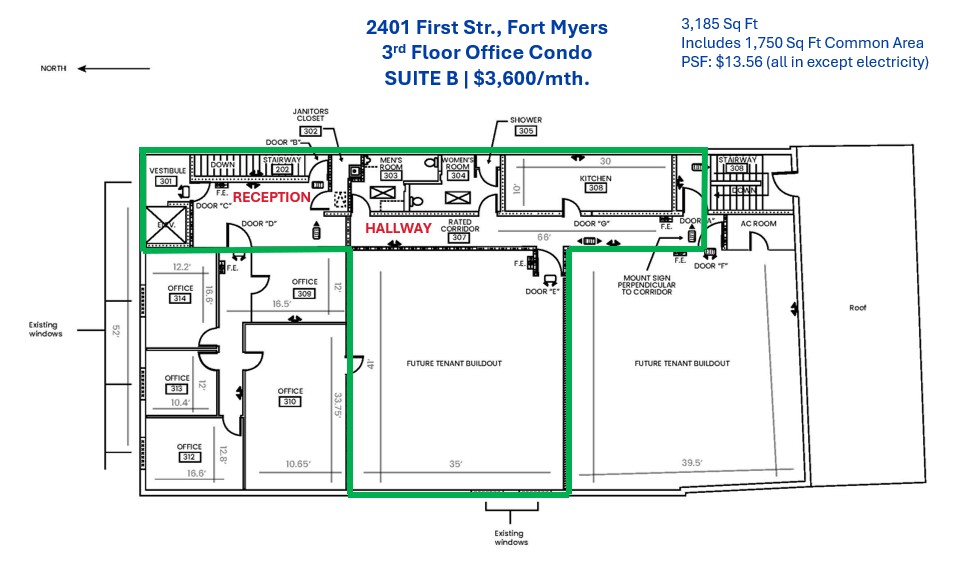 - Class “B” Office Condo Unit occupies the entire 3rd flr.